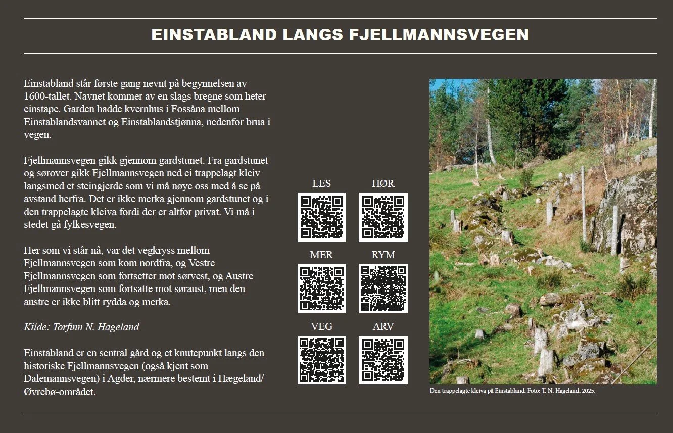 Einstabland er en sentral gård og et knutepunkt langs den historiske Fjellmannsvegen (også kjent som Dalevegen) i Agder, nærmere bestemt i Hægeland/Øvrebø-området.