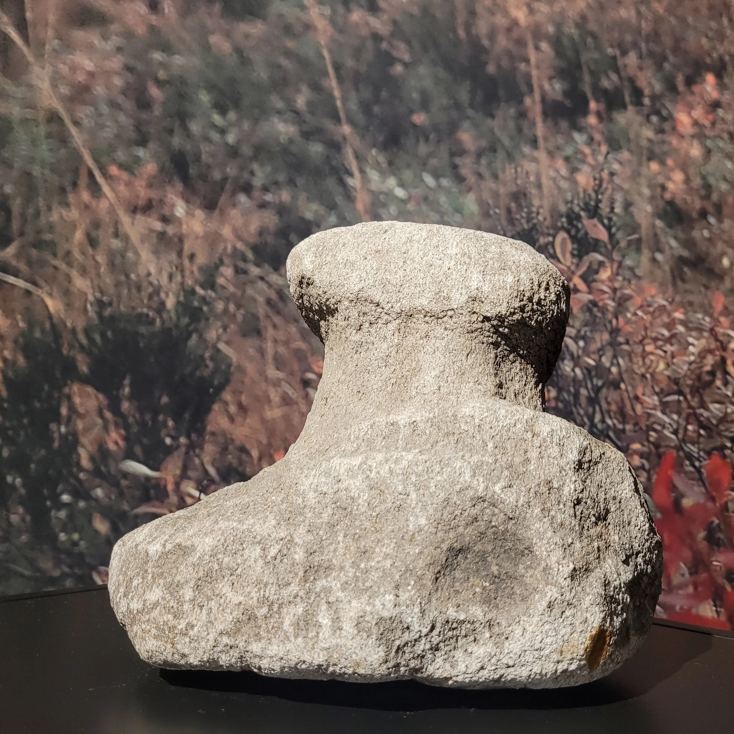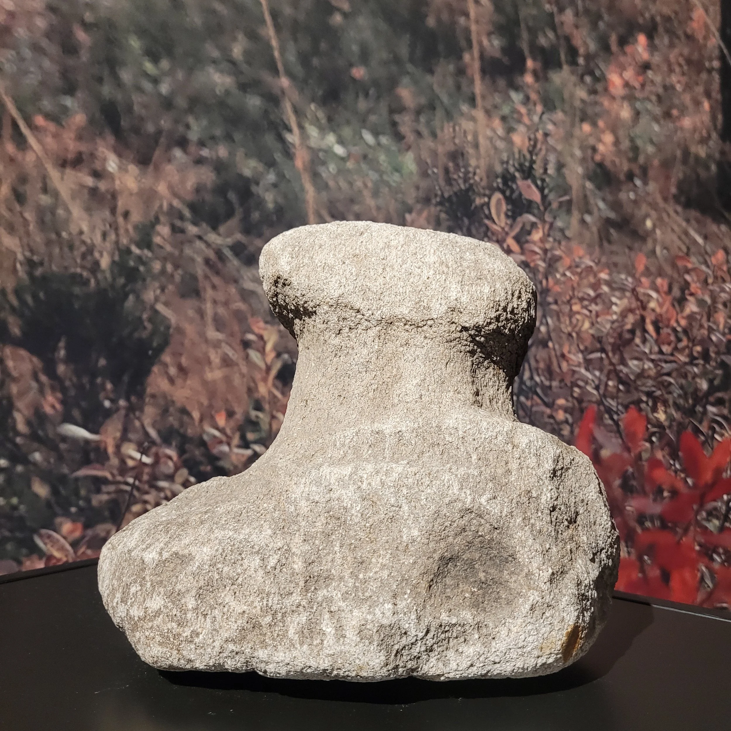 Størrelse: 24,5 cm i høyde, videste tverrsnitt 27 cm. Steinen har vært Tingvatn fornminnepark i Hægebostad siden 2018. Tingvatn fornminnepark er endel av Vest-Agder museet.