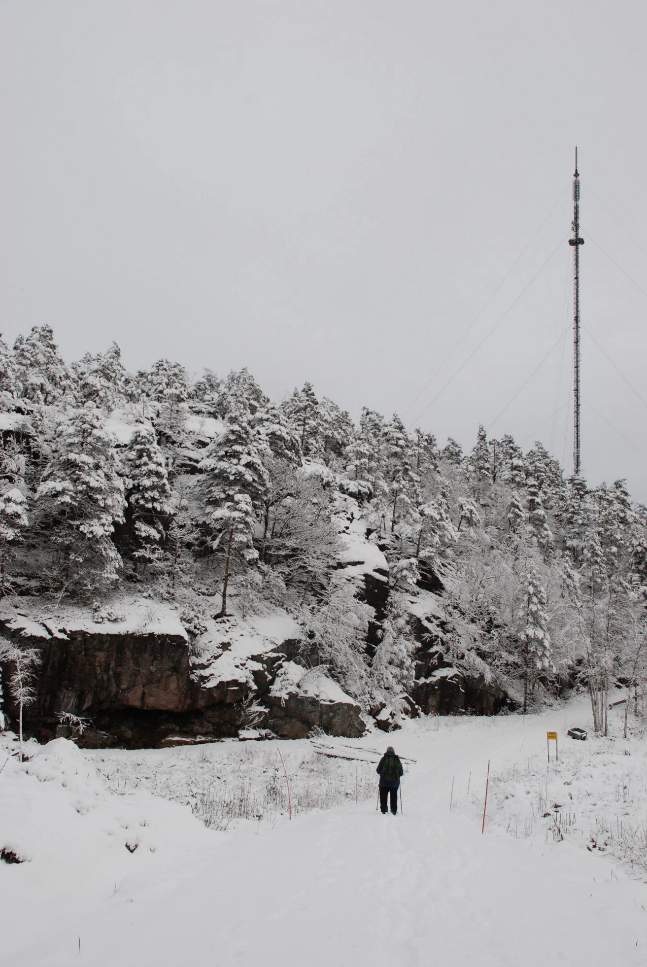 Fjellmannshola til venstre. Bomvegen opp til kringkastingsmasta på Hesteheia til høyre. Foto: T.N. Hageland.