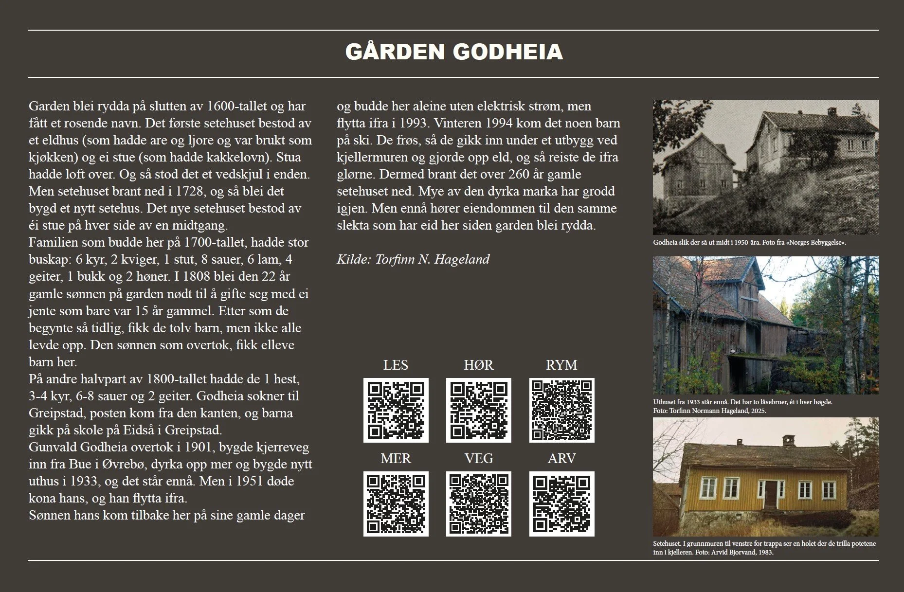 Gunvald Godheia overtok i 1901, bygde kjerreveg inn fra Bue i Øvrebø, dyrka opp mer og bygde nytt uthus i 1933, og det står ennå. Men i 1951 døde kona hans, og han flytta ifra.