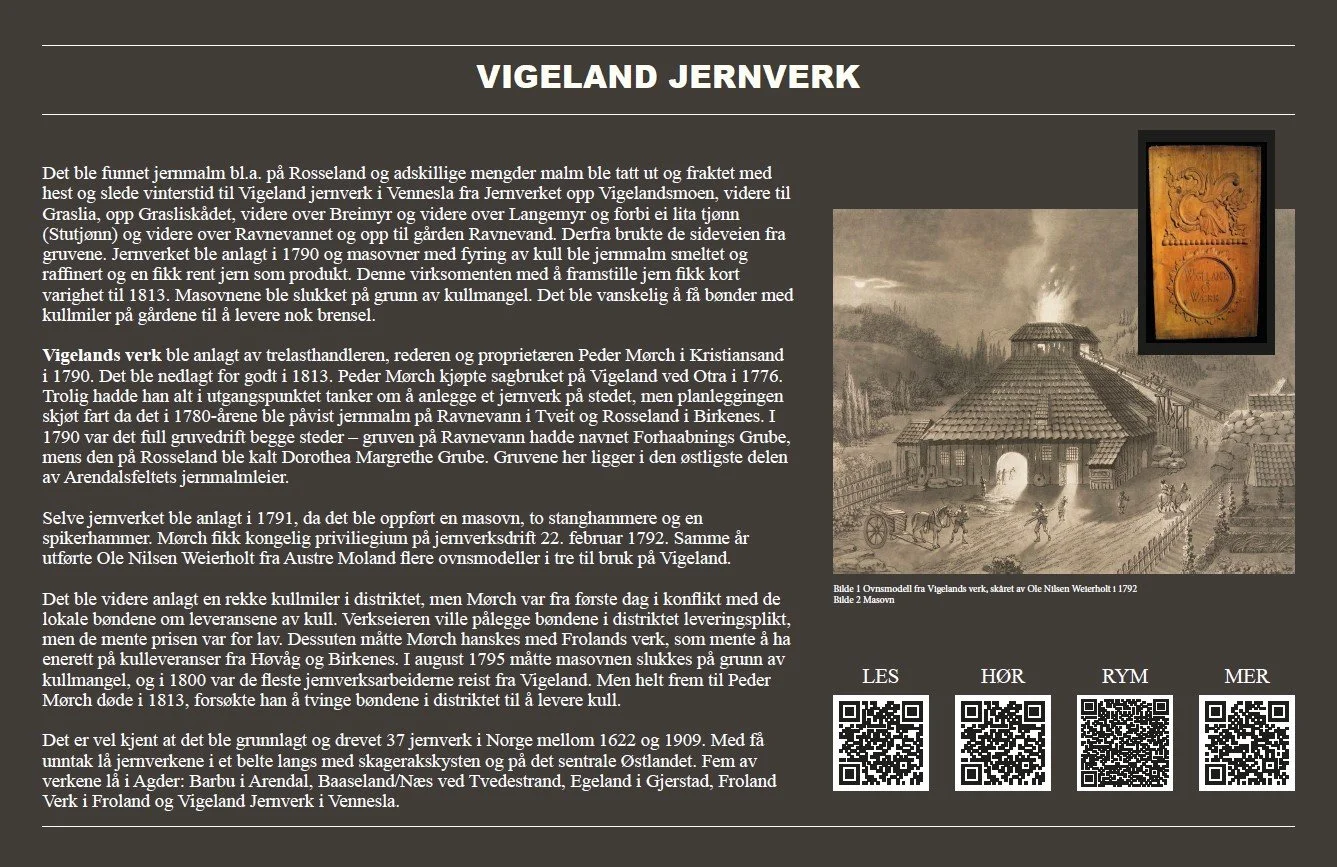 Det er vel kjent at det ble grunnlagt og drevet 37 jernverk i Norge mellom 1622 og 1909. Med få unntak lå jernverkene i et belte langs med skagerakskysten og på det sentrale Østlandet. Fem av verkene lå i Agder: Barbu i Arendal, Baaseland/Næs ved Tvedestrand, Egeland i Gjerstad, Froland Verk i Froland og det kortvarige Vigeland Jernverk i Vennesla.