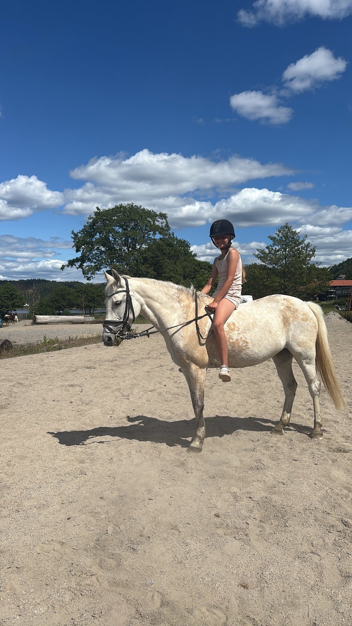 Vi rir, gjør stallarbeid, spiser lunsj sammen, bader, kjaser og koser oss sammen med hverandre og hestene