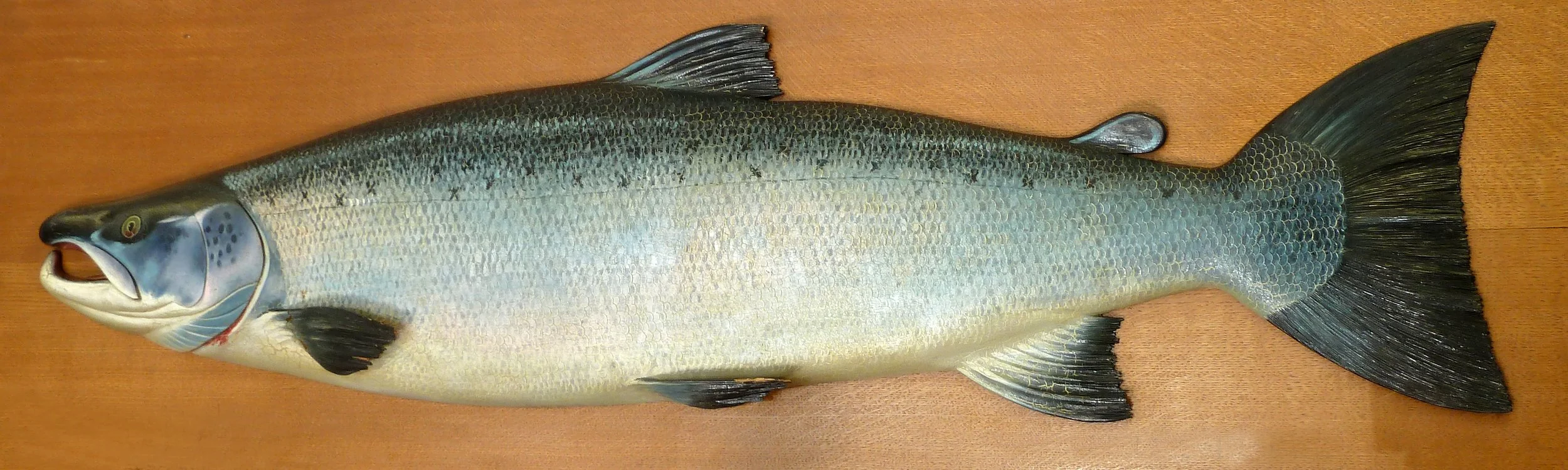 På bildet ses en kopi i tre av en laks av den gamle Otrastammen fisket av Peder Mørch (1851-1904) den 27. juli 1899 ved Vigeland. Mørch var da bestyrer på Vigelandgården for eieren John Clarke Hawkshaw. Under kopien står det at vekta var 26 ½ kilo. Avisene, og Mørch selv, skrev imidlertid at vekta var 22 ½ kilo. Lengden var 1,34 m.